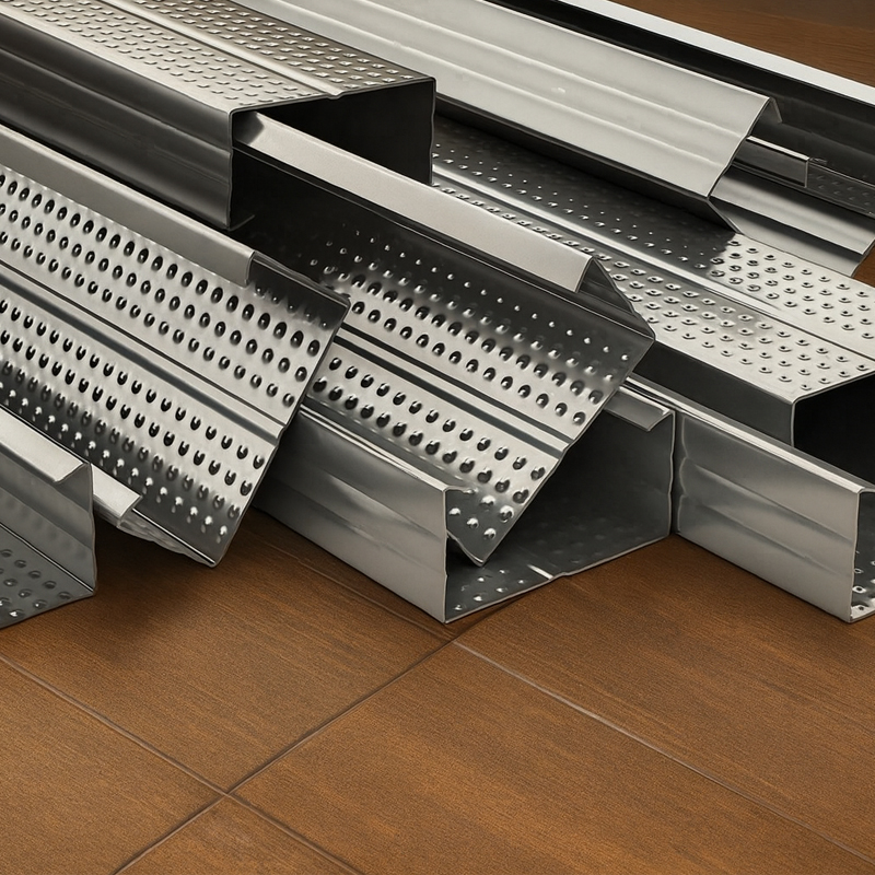 Corrosion-resistant channels providing strength and support for false ceilings and drywall installations.